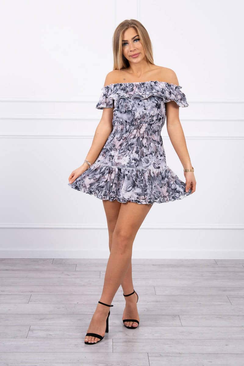 Цветна рокля с отворени рамене – Черна – 9252 - Dfashion.bg
