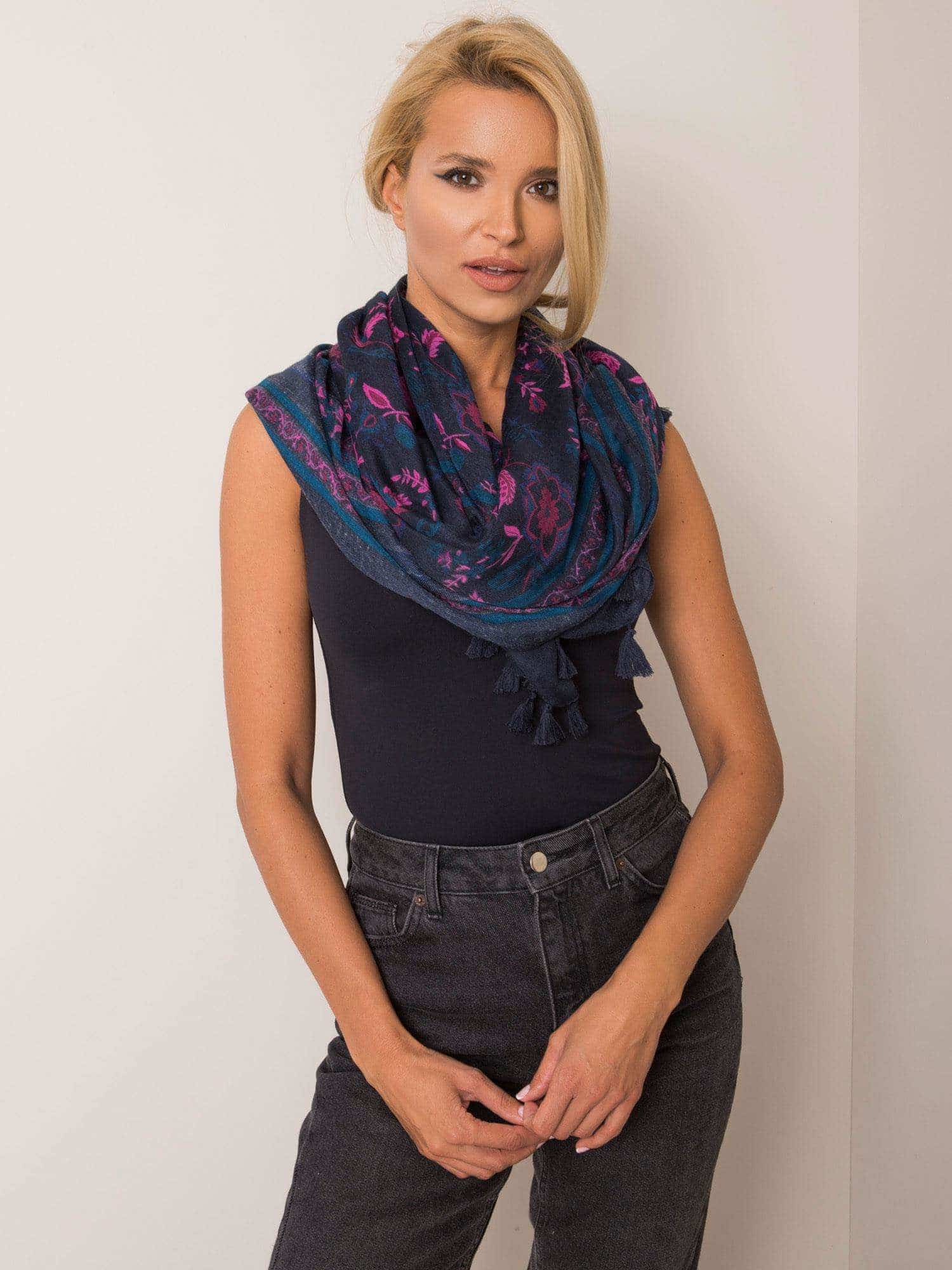 Елегантен тъмносин шал, украсена с растителни мотиви, за стилна женска визия. 🌺
