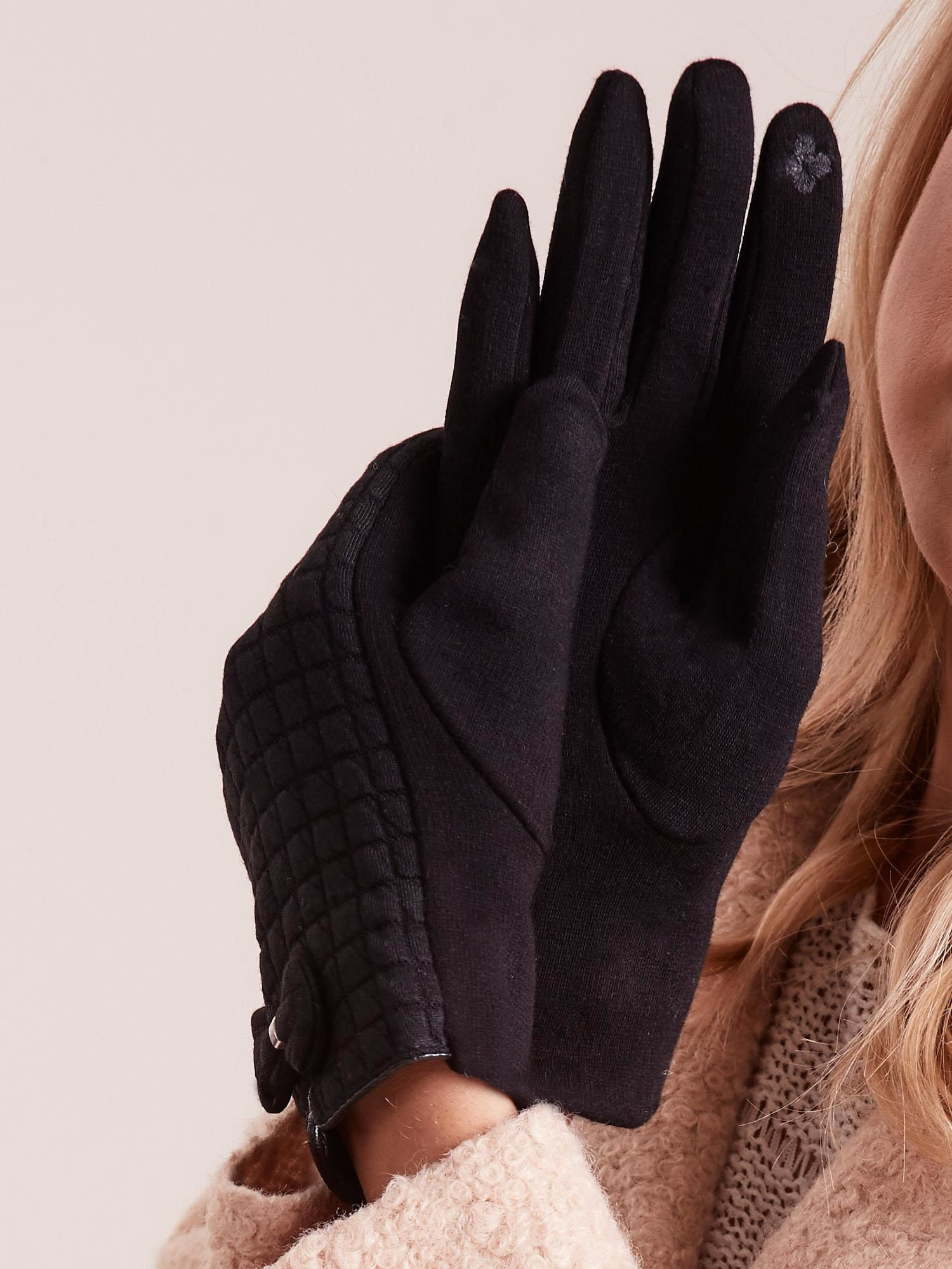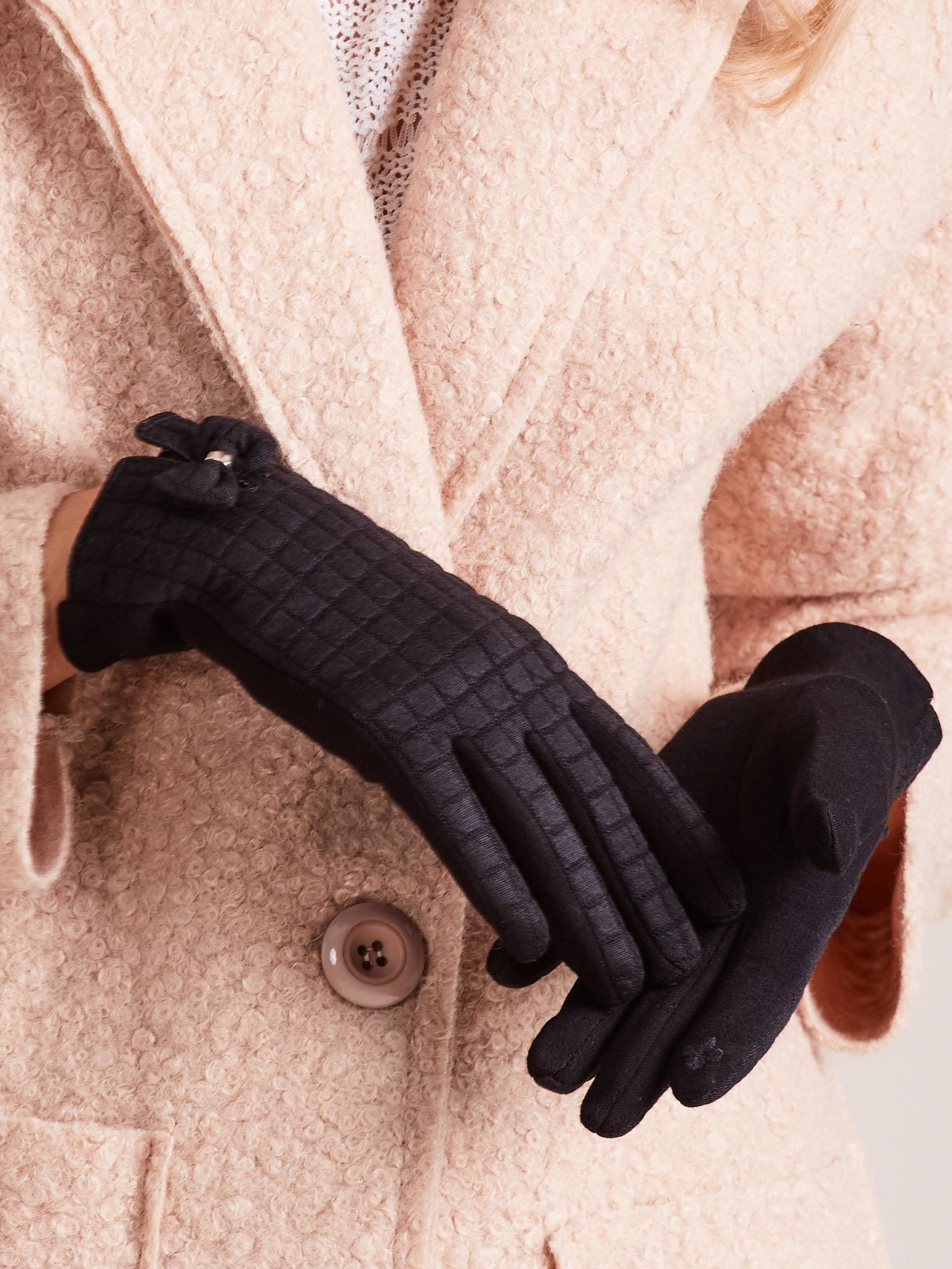 Продуктът е дамски ръкавици с каре и декорация във форма на панделки.