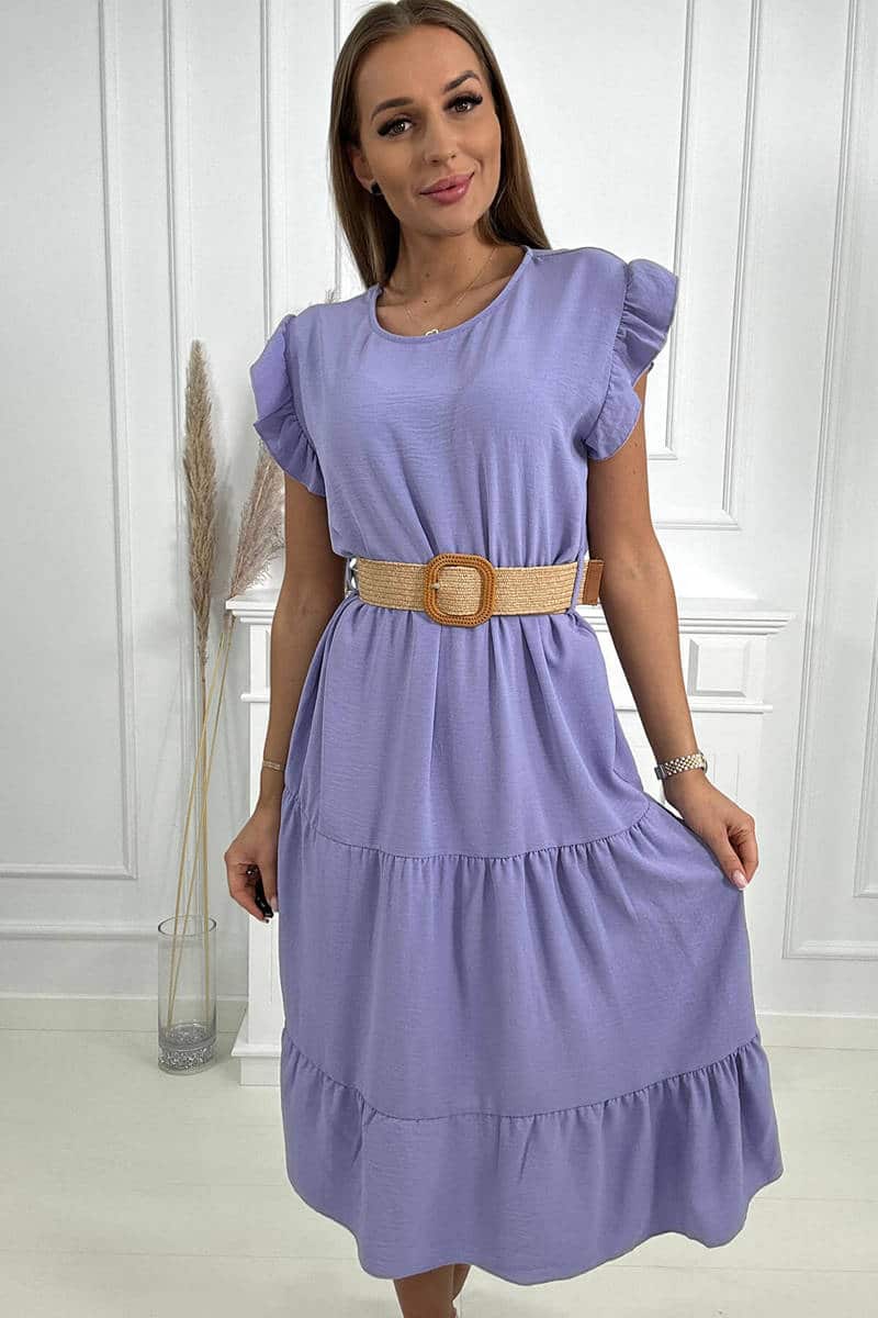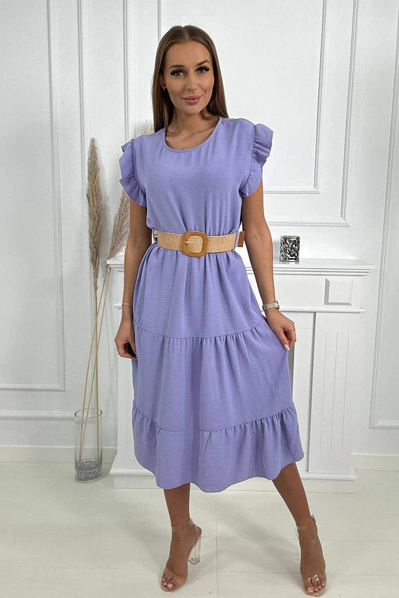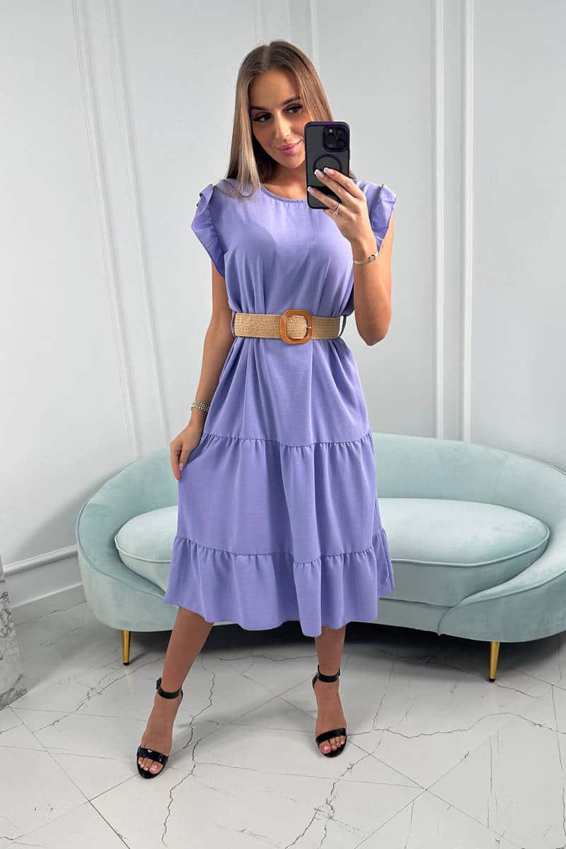 Италианска Рокля С Колан – Светлолилаво– 5997-6