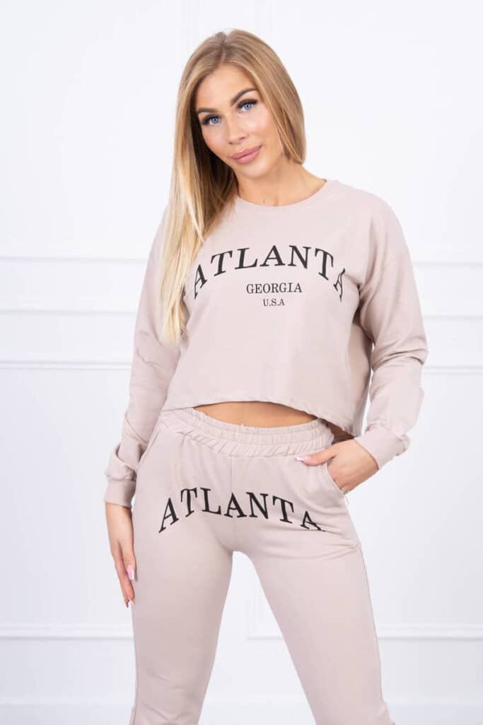 Представяме ви комплект от суитшърт и панталон . Суитшъртът е с качулка. Комплектът е изработен от висококачествен материал. Размерът е универсален и ще бъде подходящ за дами с размер S, M или L.