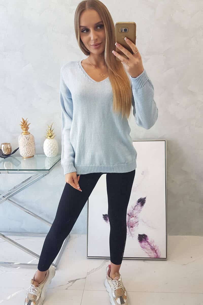 Пуловер С V-Образно Деколте – Синьо – 2020-15-6 - Dfashion.bg