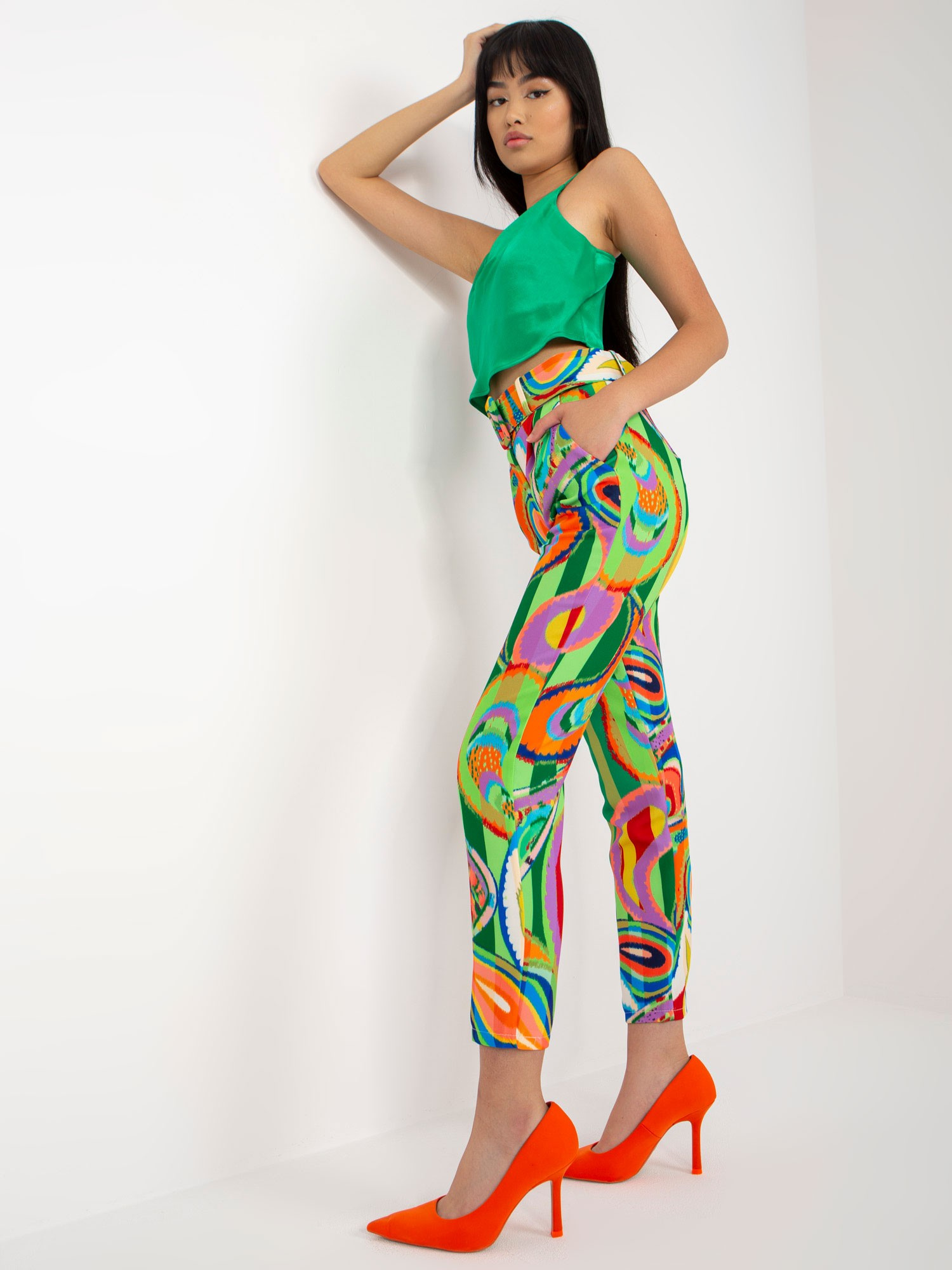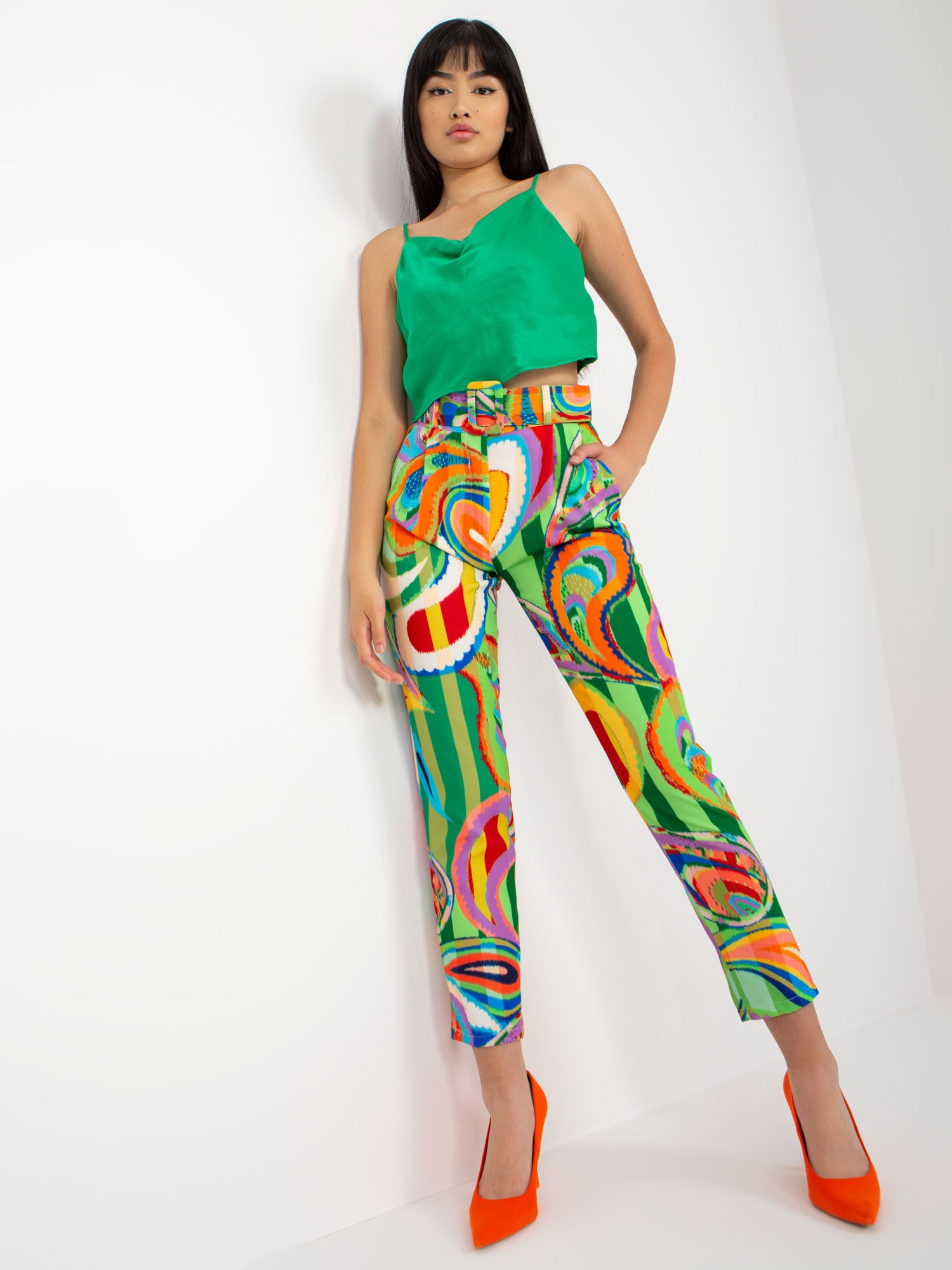 Зелени дамски панталони от материя с принт, перфектни за стилна и модерна визия. 🍃