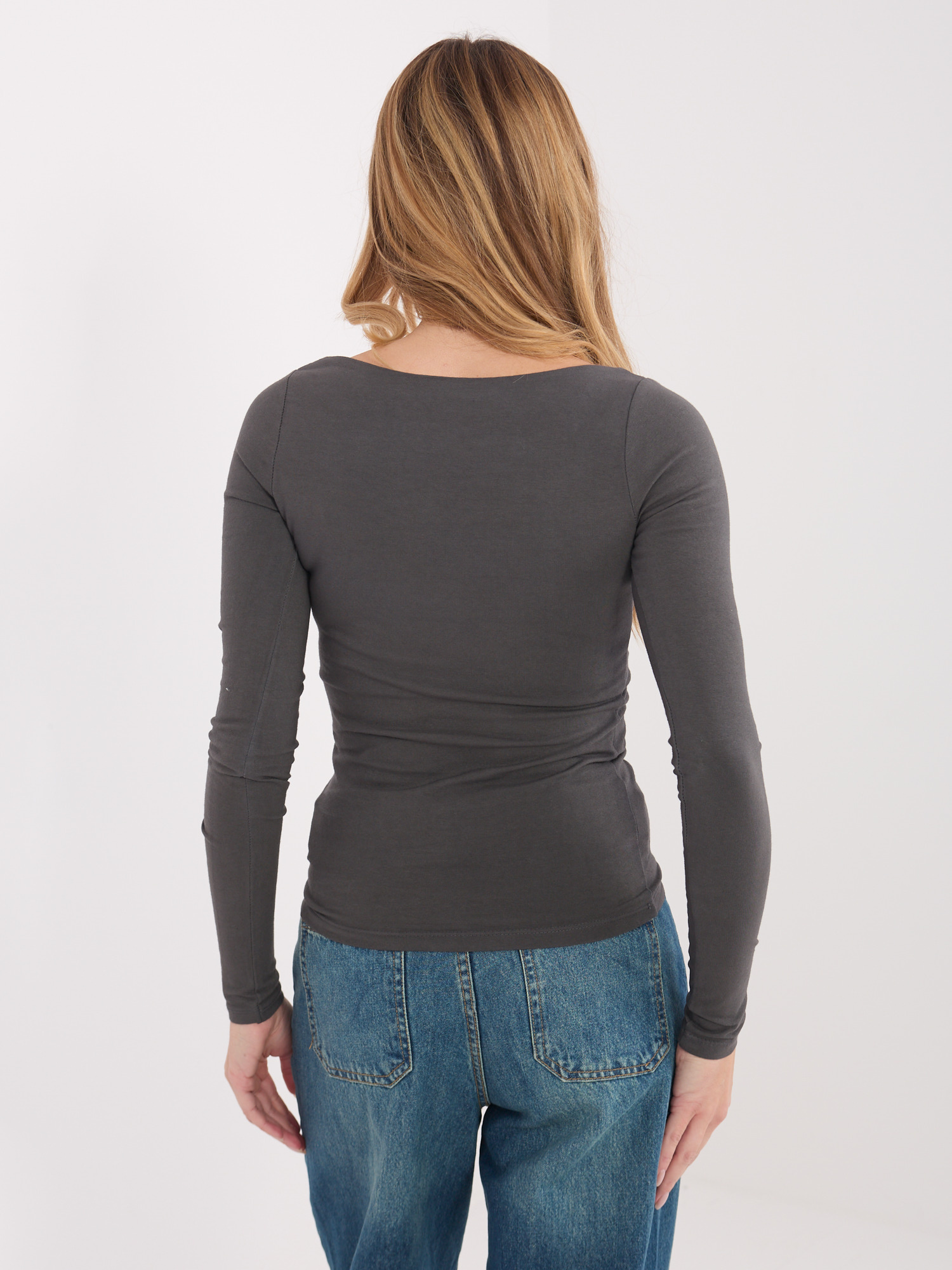 Удобна и стилна графитена блуза от памук и еластан, идеална за всеки ден и сезон. Подчертайте естествената си красота! 👚