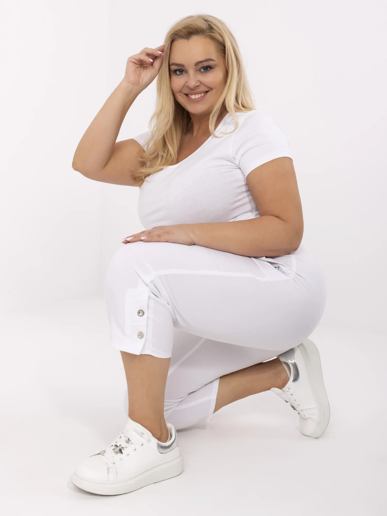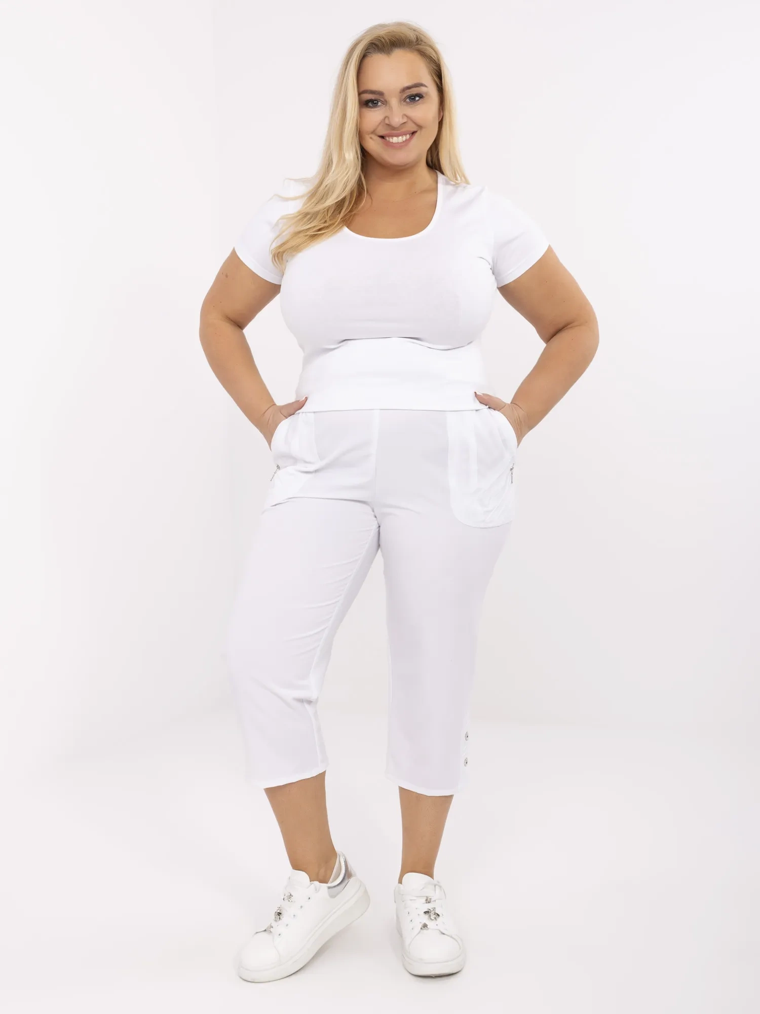 Стилни панталони в големи размери – Бял – 036606