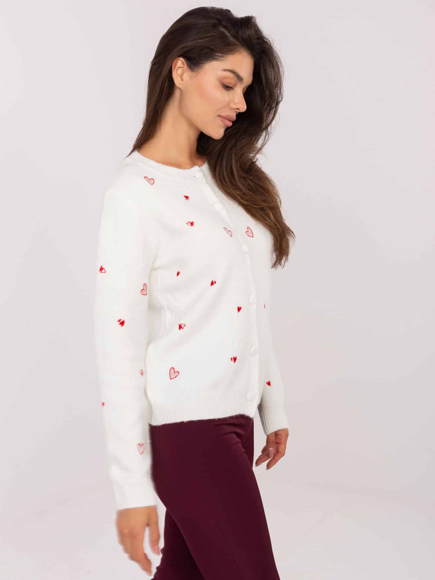 Бяла дамска жилетка с изящен бродиран детайл във формата на сърце. Перфектен за стилна и топла зима. ❤️