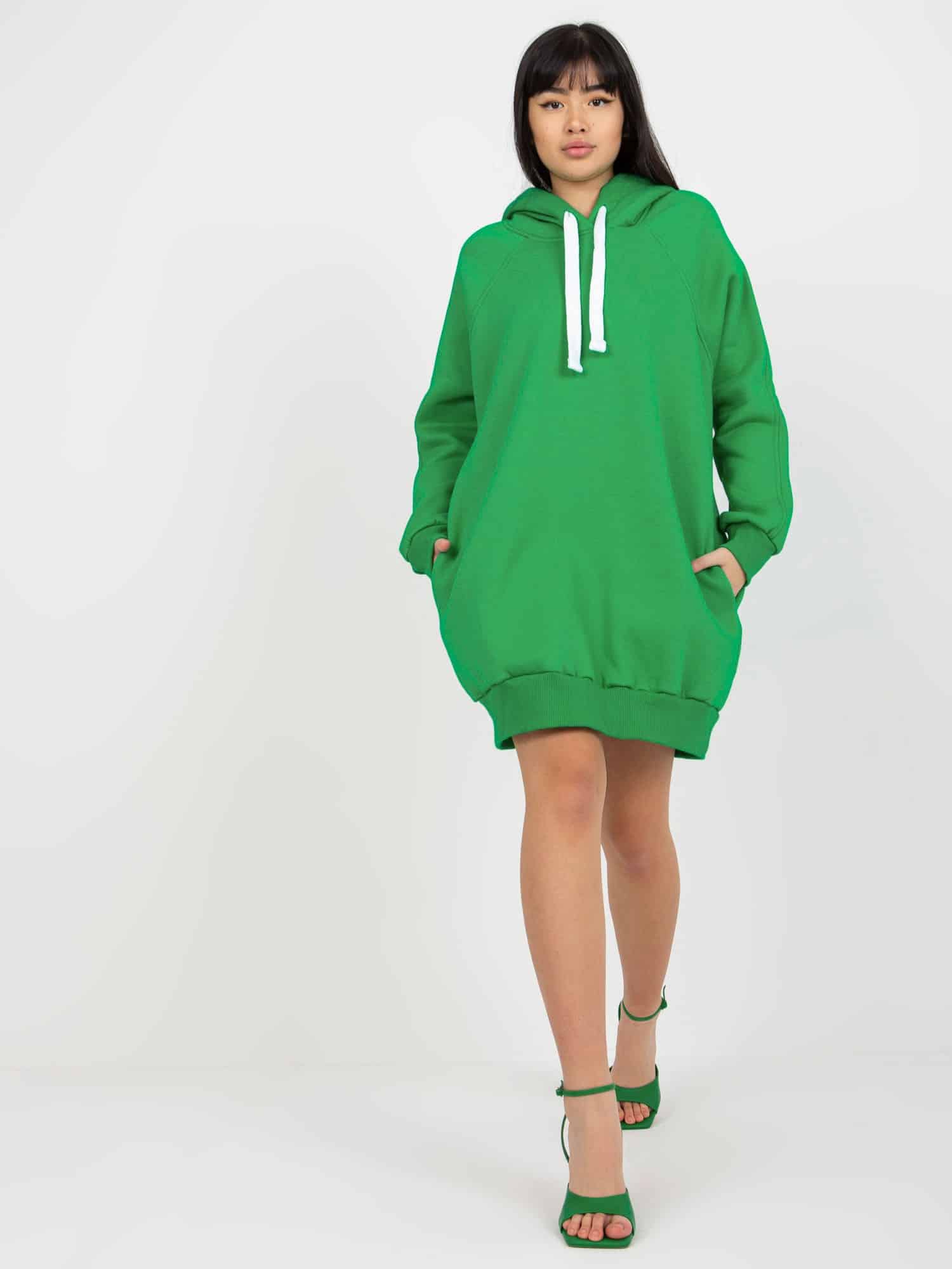 Зелена дълга дамска блуза с качулка – базичен и комфортен модел, идеален за ежедневието и спортни активности. 🍃